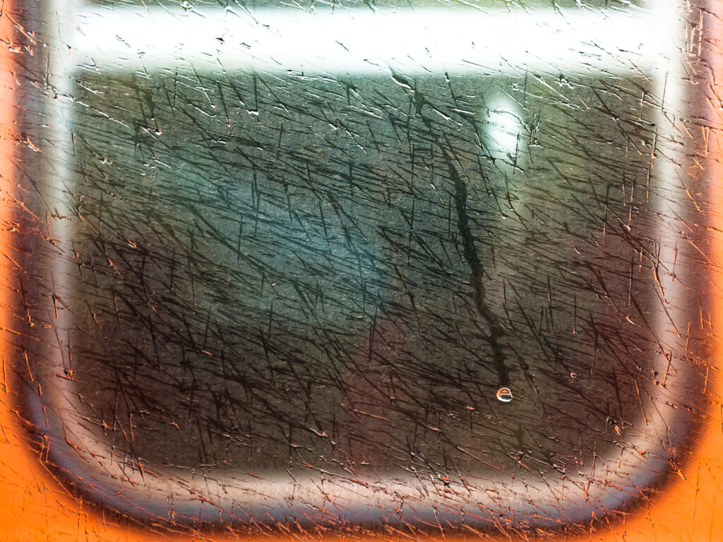 2018. Coastal Eastern line in Taiwan, from Hualien to Taipei, on a rainy day. Just after the train had stopped at a certain station, one could discern, through the glass streaked by raindrops, the window of the adjacent train that had stopped at the same station, at the very same level as us—a plain window, exactly like ours had it been seen from the outside. This very brief spatial and temporal coincidence, mingled with the anticipation of returning to motion, was enough to grant a foreknowledge of other human beings, like us, inside the opposite carriage, perhaps seeking, as we were, to mentally enter the opposite carriage, into the thoughts of others. It was then that a first drop—as if it had guessed that a story was needed in human space-time, as if it felt that, halted in its destructive warrior's momentum, it had to begin telling something—instead of streaking the glass like the others, panicked a few seconds before, began to flow, merging with others and sweeping them away in a single trail. I had just been testing some adjustments and did not have time to change the settings of the D700. The passengers must have wondered why this tall foreign tourist was gesturing so much with his camera for a mere train window.